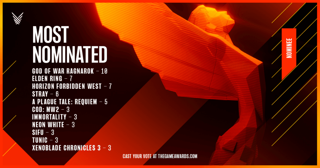 Les nominations au jeu de l’année ont été annoncées et, sans surprise, le peloton 2022 est dirigé par le poids lourd Ragnarok avec 10 nominations, tandis qu’Elden Ring et Horizon: Forbidden West ont chacun sept nominations.