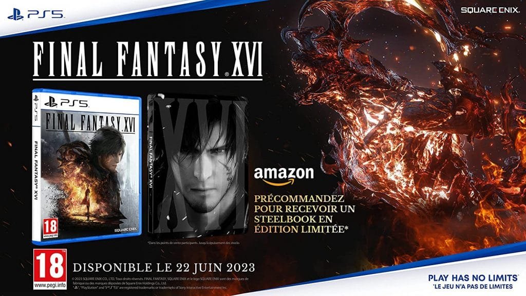 Amazon offre un étui Steelbook exclusif avec toute copie de Final Fantasy 16 que vous achetez, y compris l’édition standard. Malheureusement, pour ceux qui ont déjà précommandé le jeu ailleurs, il n’est pas possible d’en acheter un individuellement, mais vous pouvez envisager d’acheter l’édition Deluxe, qui est livrée avec le coffret Steelbook officiel, comme indiqué ci-dessous.