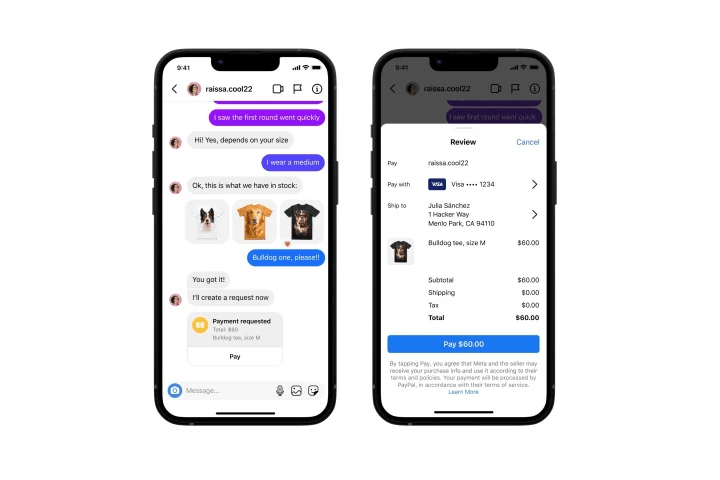 Les clients peuvent s’attendre à l’utiliser pour « poser des questions, acheter et suivre leurs commandes », selon un communiqué officiel annonçant la nouvelle fonctionnalité. Les paiements sont effectués via Meta Pay et traités par PayPal. Les petites entreprises peuvent s’attendre à de nouvelles fonctionnalités qui leur permettent de créer et d’envoyer des demandes de paiement, de discuter avec les clients et de recevoir des paiements. La demande de paiement comprendra la description de l’article et le prix indiqué.
