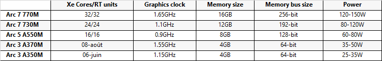 Voici un aperçu de la famille de GPU mobiles Arc Alchemist :