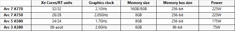 Voici les spécifications d’Intel Arc Alchemist pour les ordinateurs de bureau :
