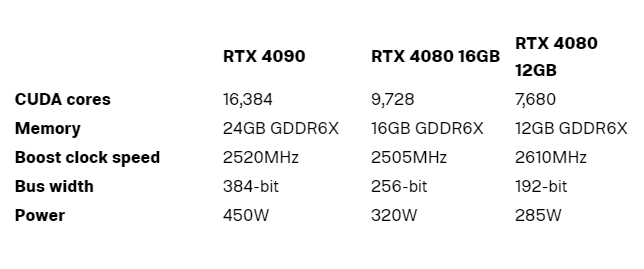 Cependant, les améliorations se font au détriment de la puissance et du prix. Le RTX 4090 atteint un maximum de 450 watts, le même que le RTX 3090 Ti. Il coûte également 1 600 $, soit 100 $ de plus que le RTX 3090 au lancement. Le RTX 4080 de 16 Go coûte 1 200 $, tandis que le RTX 4080 de 12 Go coûte 900 $, ce qui est un grand bond par rapport au prix de lancement de 700 $ du RTX 3080.