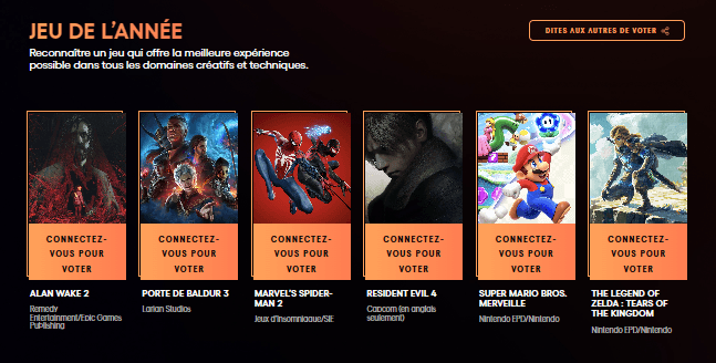 Geoff Keighley vient d’annoncer les nominations pour les différents prix The Game Awards. Bien que Starfield ait reçu quelques nominations, le RPG n’est pas pris en compte pour la plus grande récompense de 2023. Parmi les nominations figurent Resident Evil 4, Baldur’s Gate 3, Zelda : Tears of the Kingdom, Spider-Man 2, Alan Wake 2 et Super Mario Bros. Wonder. Tous ces jeux ont été parmi les mieux notés de l’année.