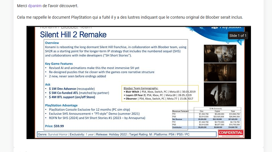 il a malheureusement été annulé en raison d’une brouille avec Konami. Dans le but de revitaliser la franchise, Konami prévoit désormais plusieurs nouveaux jeux et un remake du jeu le plus apprécié de la série. Même si Silent Hill 2 devrait rester fidèle à son scénario original, il sera mis à jour et modernisé de diverses manières.