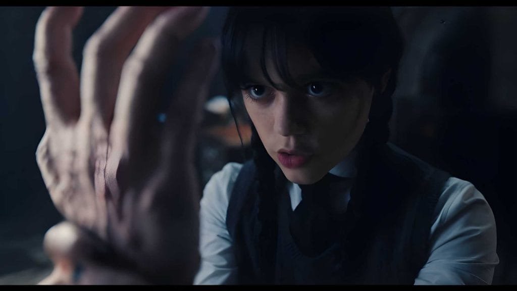 De nouveaux clips montrent Adams découvrant mercredi la chose emblématique de la main coupée dans son dortoir. La Main a été persuadée mercredi de travailler avec elle après avoir appris que la chose était là à la demande de ses parents.