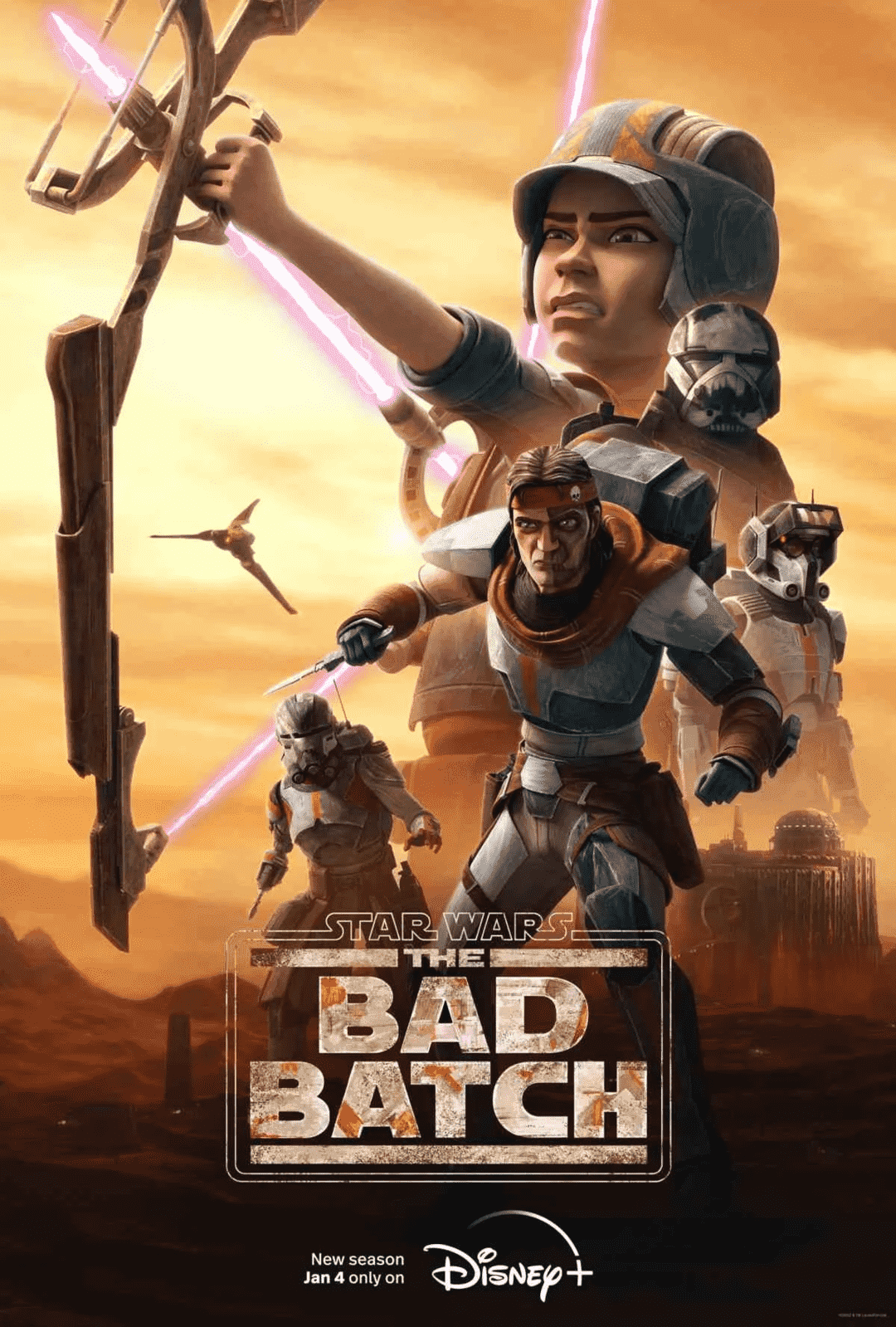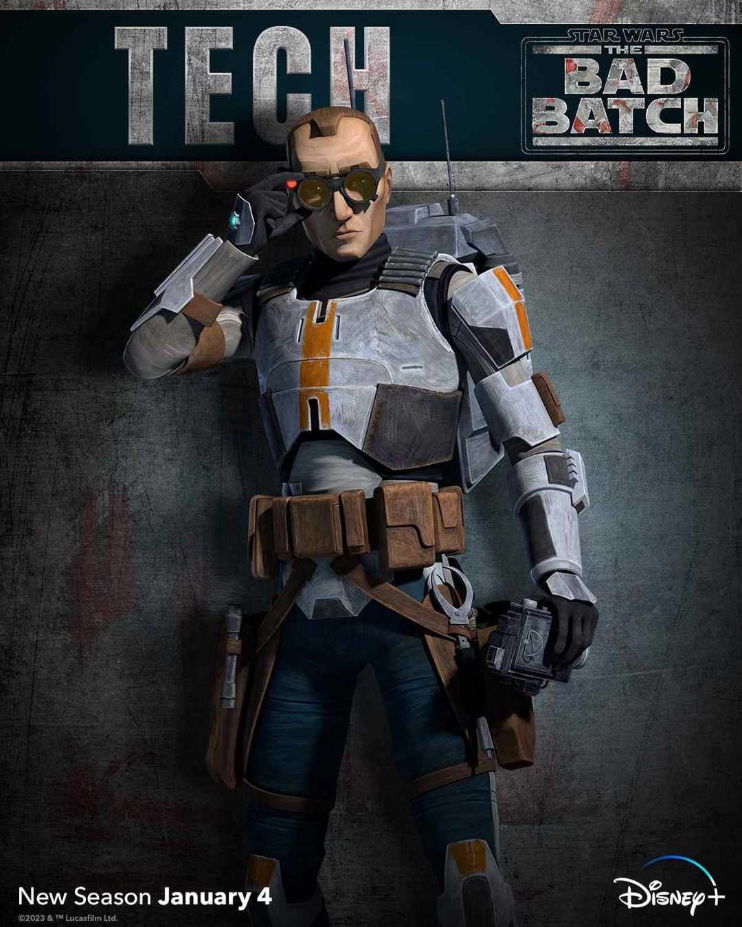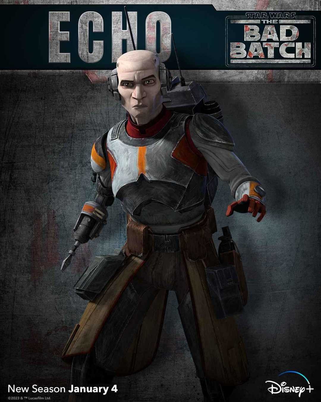Star Wars lancera la nouvelle année avec la saison 2 de Star Wars : The Bad Batch sur Disney+. Lucasfilm a publié une bande-annonce pour la nouvelle saison, suivie d’une série d’affiches de personnages montrant de nouveaux looks pour Omega et Clone Force 99. Omega a abandonné les vêtements qu’elle portait sur Camino et a opté pour quelque chose de plus pratique. Les anciens membres de Clone Trooper 99 ont retiré la peinture noire et rouge de leur armure et l’ont remplacée par une peinture plus claire avec une bordure orange. Mais c’est peut-être la vieille peinture fanée, maintenant que les clones n’ont plus les ressources de la république pour les soutenir.