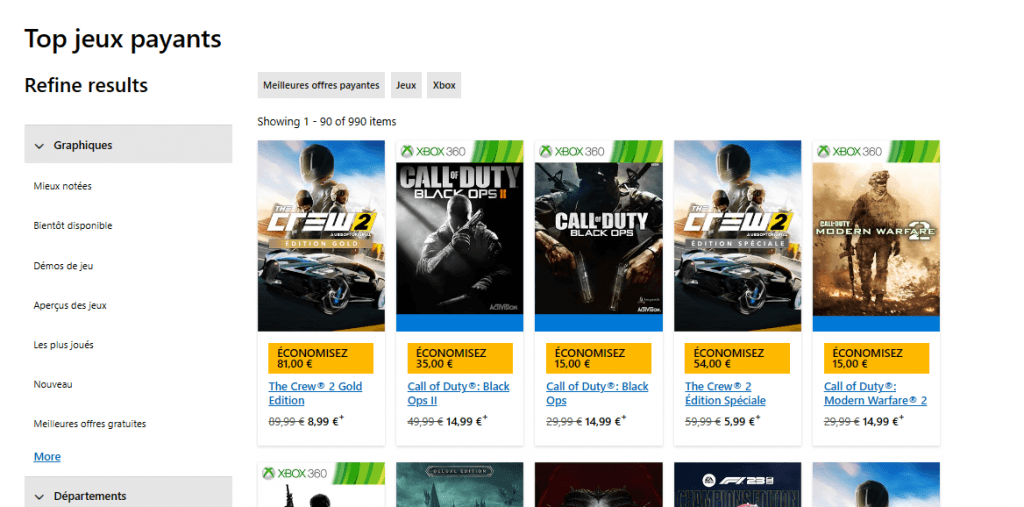 La franchise Call of Duty occupe les cinq premières places de la liste des meilleures ventes. Le jeu emblématique de Treyarch, Black Ops 2, est actuellement le plus vendu sur la plateforme, tandis que Modern Warfare 2, sorti l’année dernière, arrive en cinquième position.