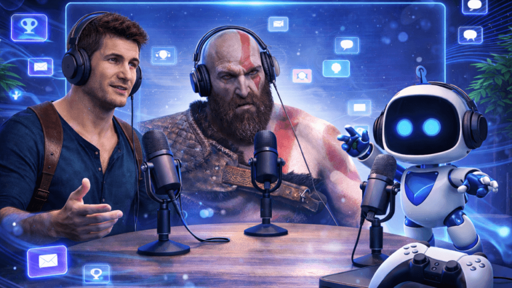 L’aspect le plus marquant et sans doute le plus sensible de ce brevet réside dans l’idée que ces podcasts pourraient être narrés par des personnages emblématiques de l’univers PlayStation. Kratos, Ellie, Astro Bot ou d’autres figures iconiques pourraient ainsi devenir les voix de ces contenus générés par IA.