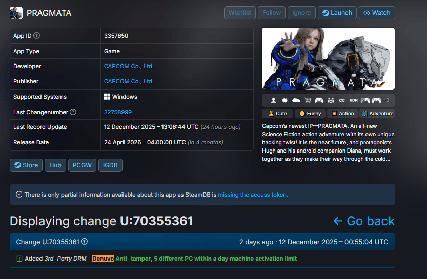 D’après des informations relevées via SteamDB, Pragmata intégrerait Denuvo sur sa fiche Steam. Et sur PC, ce nom agit comme un interrupteur : en quelques heures, les commentaires se sont multipliés, entre méfiance immédiate et boycott annoncé.