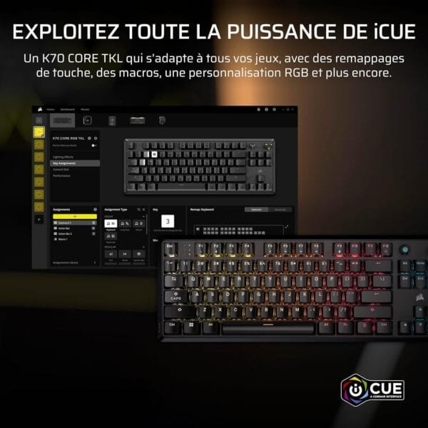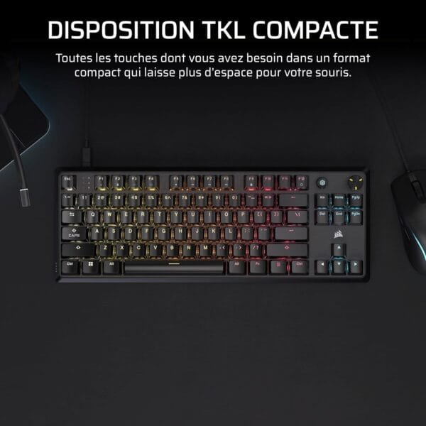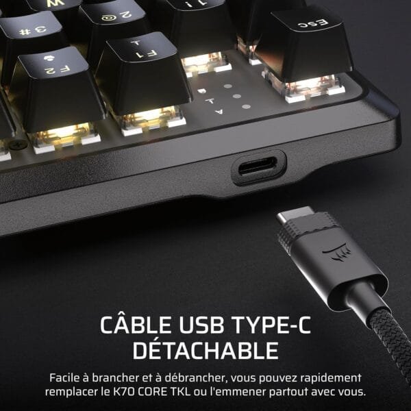 Effectuez des actions de maître tout en laissant de la place pour votre souris. Le clavier gaming CORSAIR K70 CORE TKL WIRELESS propose une expérience de jeu et de frappe extraordinaire dans un format compact sans pavé numérique et libre de tout câble grâce à la technologie ultrarapide SLIPSTREAM WIRELESS v1.5 ou une connexion Bluetooth.