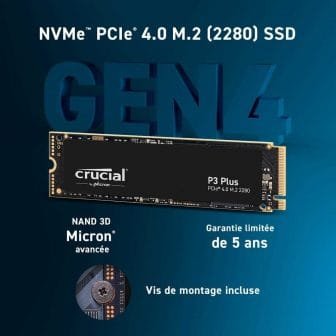 | Composants inclus | Crucial P3 Plus PCIe NVME SSD |