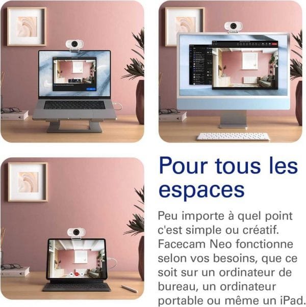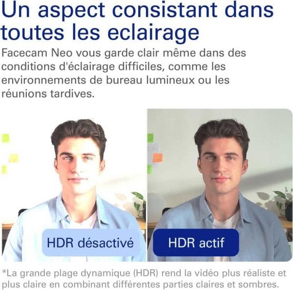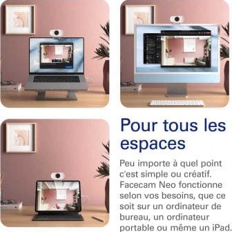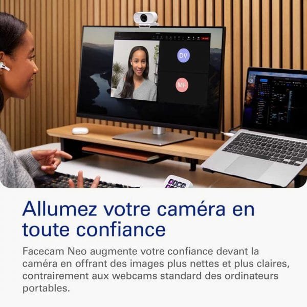 Vous en avez assez des vidéos sombres et gâchées par le grain ? Contrairement aux caméras intégrées des ordinateurs portables, Facecam Neo capture une image ultra nette et naturelle. Quand votre image est fidèle à la réalité, votre audience est plus réceptive et vous pouvez marquer les esprits durablement.