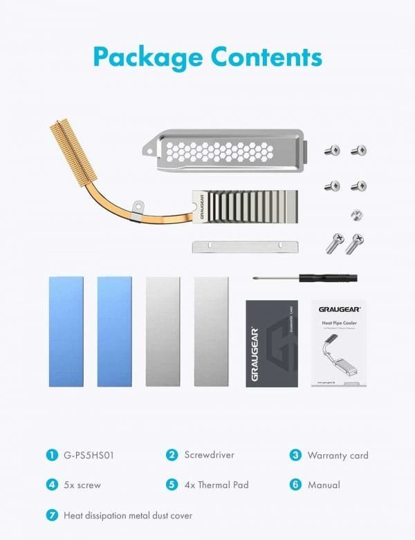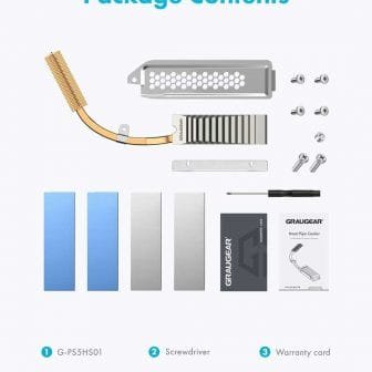 - Contenu de l’emballage : 1 refroidisseur de caloduc G-PS5HS01 + accessoires + tournevis + couvercle en métal + coussinets chauffants