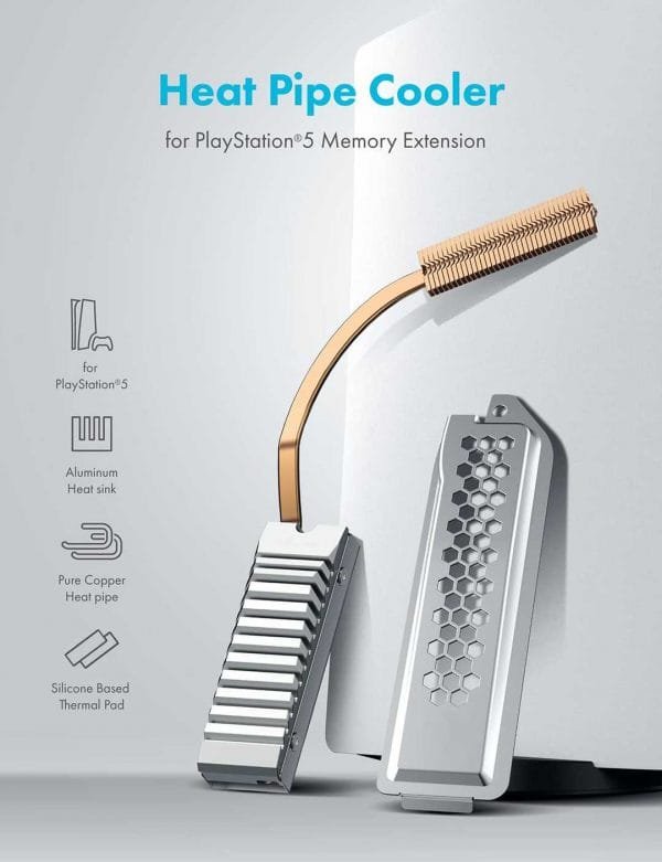 GAUGEAR | Dissipateur thermique pour SSD M.2 (2280) avec couvercle | Kit de refroidissement PS5 Heatpipe | pour extension de mémoire PS®5 | 4 coussinets de conduction thermique inclus | G-PS5HS01-Cov