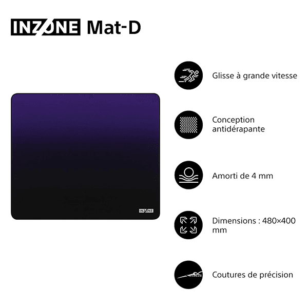 Le Mat-D est conçu pour fonctionner parfaitement avec toutes les souris gaming, quel que soit le capteur ou la sensibilité utilisée. Il fait partie de la nouvelle gamme INZONE by Sony, pensée pour les joueurs PC compétitifs.