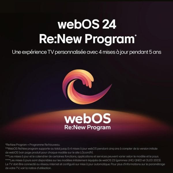 | Services Internet pris en charge | Disney Plus, Netflix, Prime Video, Apple TV, YouTube |
