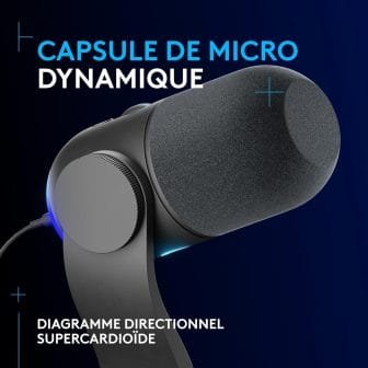 Le Yeti GX est un micro gaming RGB haut de gamme alimenté par LIGHTSYNC et conçu spécialement pour les streamers de jeux. Associant une capsule personnalisée à un logiciel avancé, ce microphone USB rejette les bruits et les clics des touches.