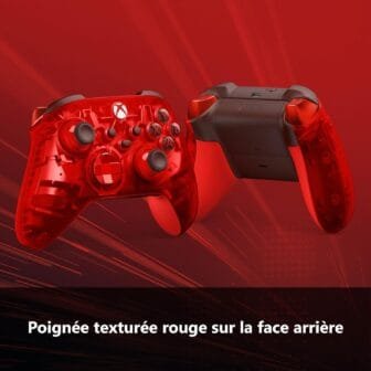Révèle les mystères de la manette sans fil Xbox – Édition spéciale Pulse Cipher, avec son design rouge transparent, son intérieur argenté, ses éléments métalliques et bien plus encore. Regarde au travers du boîtier et des gâchettes latérales rouges et transparentes pour voir les composants métalliques et argentés briller de l’intérieur.