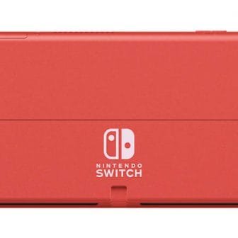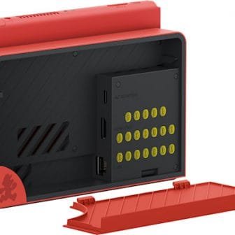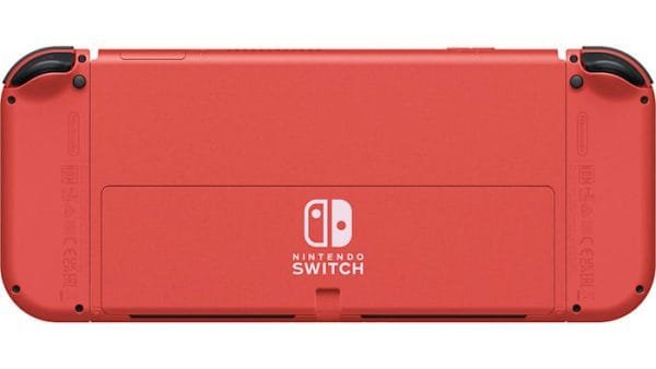 Téléportez-vous dans un monde de jeux avec la console Nintendo Switch – Modèle OLED : Édition Mario rouge Cet ensemble inclut une console, une station d’accueil, et des manettes Joy-Con™ toutes dans la couleur rouge emblématique de Mario. Une silhouette de Mario saute dans l’action à l’arrière de la station d’accueil. Regardez de près et vous trouverez aussi des pièces cachées!