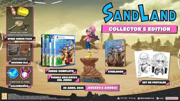 Dans cet action RPG, les joueurs retrouveront un monde nostalgique et chaleureux créé par Akira Toriyama, où vous devenez le personnage principal en incarnant Beelzebub. Apprenez à contrôler ses pouvoirs, menez votre petite troupe de héros bigarrés et explorez le monde légendaire de SAND LAND. Naviguez les nombreux dangers qui le peuplent, entre les bandits, la faune locale féroce et l’armée royale, atteindre la source légendaire ne sera pas de tout repos ! Utilisez votre doigté et votre imagination pour assembler des chars et d’autres véhicules qui vous aideront à parcourir ces immenses contrées, tout en profitant d’un vaste éventail de combinaisons de pièces.