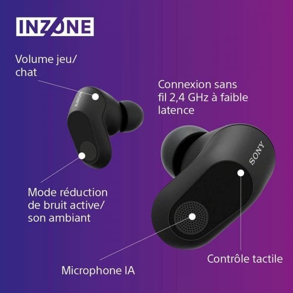 Grâce à un diaphragme de 8,4 mm, à une technologie à réduction de bruit et à un son spatial qui s’adapte à vos oreilles, les écouteurs INZONE Buds propulsent le réalisme de vos jeux à un tout autre niveau.
