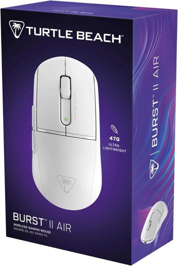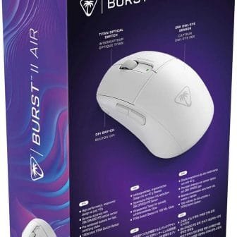La souris gaming sans fil Burst II Air ultra-légère répond à vos besoins de vitesse, avec son poids de seulement 47 g, son capteur précis 26 000 PPP, ses interrupteurs optiques TITAN ultra-rapides et sa conception symétrique à coque solide.