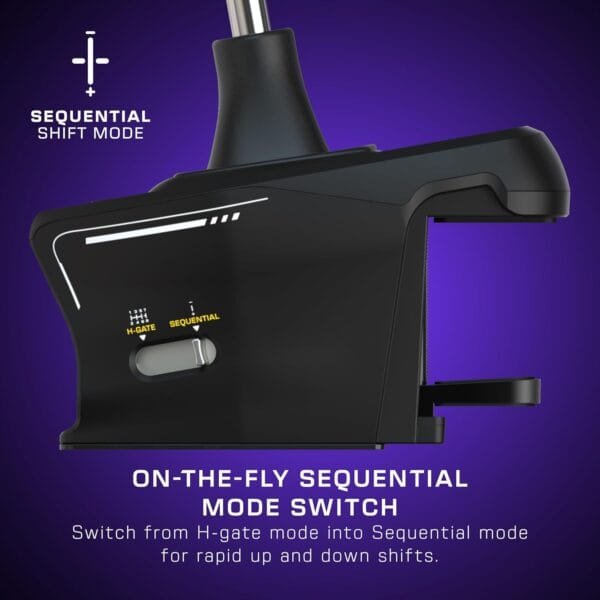 En outre, en mode séquentiel, vous pouvez appuyer sur le bouton du mode Frein à main pour transformer instantanément le Multi-Shift en un module de frein à main analogique. Les surfaces premium douches au toucher, les composants en acier et les capteurs magnétiques sans contact à effet Hall offrent une expérience réaliste, durable et de haute qualité.