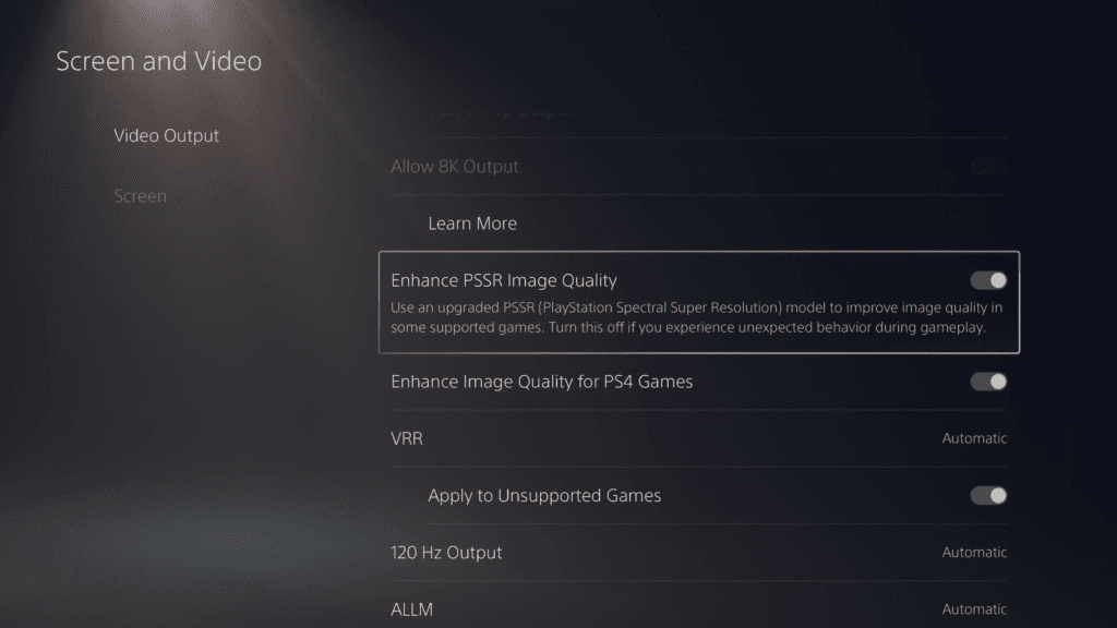 Sony a confirmé qu’une mise à jour du logiciel système introduira une nouvelle option dans les paramètres « Écran et Vidéo » : « Améliorer la qualité d’image PSSR ».