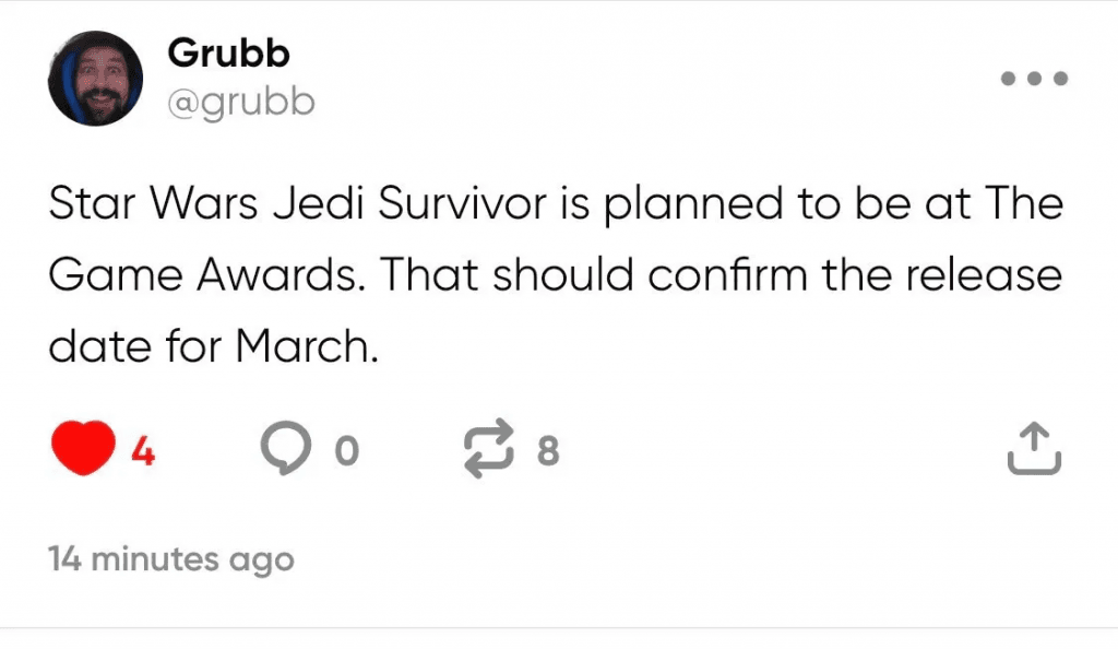 Les fans désireux d’en savoir plus sur Star Wars Jedi: Survivor pourraient avoir leur chance bientôt, alors que des rumeurs circulent sur Internet selon lesquelles la date de sortie du jeu sera enfin annoncée lors des Game Awards du mois prochain. Avec Star Wars Jedi: Survivor qui devrait être lancé au début de l’année prochaine, il y a fort à parier qu’EA et Respawn Entertainment utiliseront le dernier grand événement de 2022 pour lancer la machine marketing de la suite de Star Wars Jedi : Fallen Order.