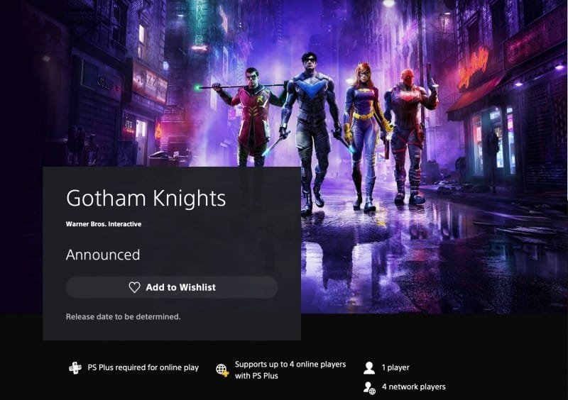 Selon une annonce du PSN, Gotham Knights pourrait avoir un système coopératif à 4 joueurs.