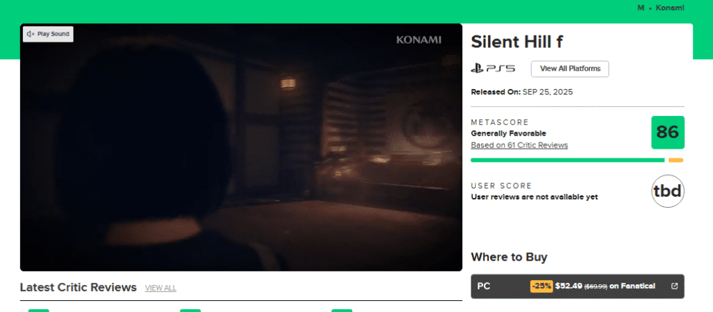 Sur Metacritic, Silent Hill f affiche une moyenne impressionnante de 86/100, basée sur 58 critiques au moment d’écrire ces lignes. Un score qui place le jeu au niveau des grandes réussites du genre et qui vient balayer les inquiétudes qui entouraient son développement.