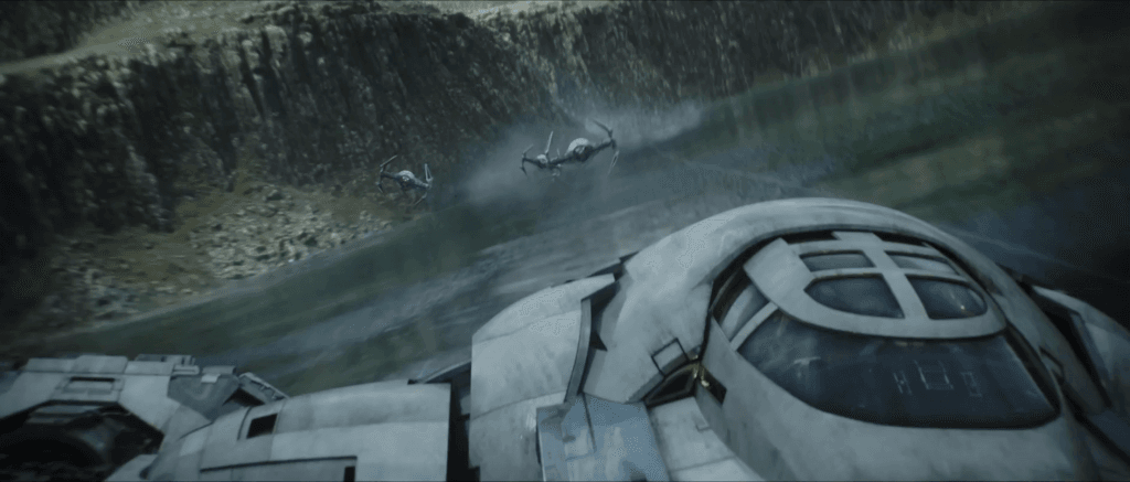 La bataille aérienne des chasseurs Naboo de Din et de gantelet de Bo-Katan contre l’escadron d’intercepteurs TIE a été brillante. En tant que scène de mêlée, elle a tout pour plaire : une vitesse vertigineuse, des manœuvres aériennes palpitantes, des explosions massives. Et ce qui rend Star Wars si génial dans ce domaine particulier, c’est que chaque vaisseau a sa propre personnalité. Qu’il s’agisse de la façon dont le Gauntlet bat des ailes pour dériver et submerger les intercepteurs, l’agilité et la vitesse fulgurante du N-1 modifié, ou la signature du TIE, un cri presque animal, cette scène est carrément ringard, et dans une grande mesure .