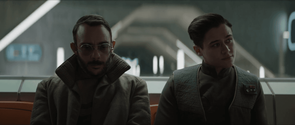L’une des meilleures choses dans la mission de Pershing et d’Elia pour récupérer l’équipement du Star Destroyer est la scène du train, qui a, bien sûr, été faite d’innombrables fois auparavant, mais qui est bienvenue ici en ce qu’elle ajoute un peu de tension et de danger à ce qui avait été un peu terne jusqu’à présent. Abtahi est un grand interprète, mais les scènes de malaise au bureau et les interactions avec Elia et les autres convertis de la Nouvelle République sont souvent guindées et oubliables, de sorte que les scènes du train et du croiseur impérial grinçant sont comme des bouffées d’air frais.