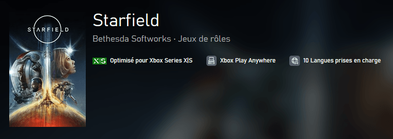 La page de la boutique du jeu met en avant des fonctionnalités telles que l’optimisation pour les deux consoles Xbox. Elle a également été mise à jour pour indiquer que Starfield est compatible avec Xbox Play Anywhere.